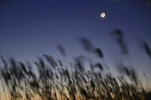 (251020) — HARBIN, 20 octubre, 2025 (Xinhua) — Imagen del 19 de octubre de 2025 del planeta Venus cerca de la Luna en el cielo sobre la ciudad de Tongjiang, en la provincia de Heilongjiang, en el noreste de China. (Xinhua/Liu Wanping) (rtg) (ah) (ce)