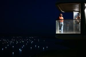 (251020) — GONGHE, 20 octubre, 2025 (Xinhua) — Imagen del 17 de octubre de 2025 de turistas tomando fotografías en una casa de huéspedes en el área de la Garganta de Longyang, en el distrito de Gonghe de la prefectura autónoma tibetana de Hainan, en la provincia de Qinghai, en el noroeste de China. Cada año, desde finales de agosto hasta finales de noviembre, los pescadores de la Garganta de Longyang se dedican a la captura del pescado plateado. (Xinhua/Qi Zhiyue) (oa) (ah) (ce)