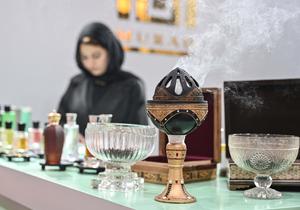 (251021) — GOBERNACION DE HAWALLI, 21 octubre, 2025 (Xinhua) — Una mujer muestra quemadores de incienso durante la Exposición de Perfumes, en la gobernación de Hawalli, Kuwait, el 21 de octubre de 2025. Una Exposición de Perfumes comenzó aquí en Kuwait el martes y durará hasta el 1 de noviembre, con la participación de más de 400 empresas de Kuwait, Arabia Saudita, Omán, Baréin, Qatar y Emiratos Arabes Unidos en este campo. (Xinhua/Asad) (oa) (ah) (ce)