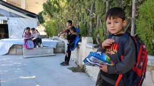 (251020) — SALMA, 20 octubre, 2025 (Xinhua) — Imagen del 13 de octubre de 2025 de niños tomando un descanso en un centro de aprendizaje temporal, en Salma, en la provincia de Latakia, Siria. Ubicadas entre olivares y los esqueletos de los edificios destruidos, las tiendas blancas que sirven de escuelas ofrecen poco refugio del frío aire de la montaña. En el interior, mesas de plástico sustituyen a los pupitres de madera, pero el rasgueo de los lápices sobre el papel resuena como el latido de un pueblo que lentamente vuelve a la vida. (Xinhua/Str) (oa) (ah) (ce)