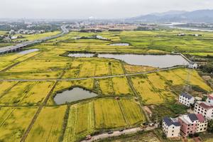 (251022) -- JINHUA, 22 octubre, 2025 (Xinhua) -- Vista aérea tomada con un dron el 22 de octubre de 2025 de una zona de demostración de tierras agrícolas de alta calidad, en el poblado de Tangya del distrito de Jindong, en la ciudad de Jinhua, en la provincia de Zhejiang, en el este de China. (Xinhua/Xu Yu) (ah) (ra) (ce)