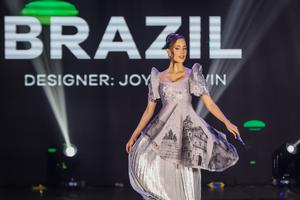 (251022) -- CIUDAD QUEZON, 22 octubre, 2025 (Xinhua) -- Laila Frizon, de Brasil, presenta una creación durante el Desfile de Modas del Terno Filipino de Miss Tierra 2025, en Ciudad Quezón, Filipinas, el 22 de octubre de 2025. Las candidatas a Miss Tierra 2025 de varios países participaron en el desfile de modas con vestidos confeccionados por diseñadores filipinos en celebración del 25 aniversario del certamen de belleza. (Xinhua/Rouelle Umali) (ah) (ra) (ce)