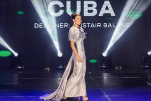 (251022) -- CIUDAD QUEZON, 22 octubre, 2025 (Xinhua) -- Rachel Chang, de Cuba, presenta una creación durante el Desfile de Modas del Terno Filipino de Miss Tierra 2025, en Ciudad Quezón, Filipinas, el 22 de octubre de 2025. Las candidatas a Miss Tierra 2025 de varios países participaron en el desfile de modas con vestidos confeccionados por diseñadores filipinos en celebración del 25 aniversario del certamen de belleza. (Xinhua/Rouelle Umali) (ah) (ra) (ce)