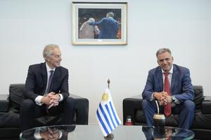 (251022) -- MONTEVIDEO, 22 octubre, 2025 (Xinhua) -- El presidente uruguayo, Yamandú Orsi (d), se reúne con el ex primer ministro británico y presidente del "Tony Blair Institute for Global Change", Tony Blair (i), en la Torre Ejecutiva, en Montevideo, capital de Uruguay, el 22 de octubre de 2025. (Xinhua/Nicolás Celaya) (nc) (jg) (da) (ce)