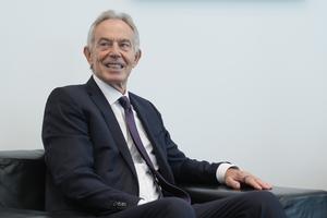 (251022) -- MONTEVIDEO, 22 octubre, 2025 (Xinhua) -- El ex primer ministro británico y presidente del "Tony Blair Institute for Global Change", Tony Blair, sonríe durante su reunión con presidente uruguayo, Yamandú Orsi, en la Torre Ejecutiva, en Montevideo, capital de Uruguay, el 22 de octubre de 2025. (Xinhua/Nicolás Celaya) (nc) (jg) (da) (ce)