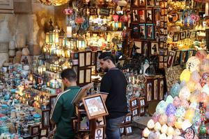 (251023) -- EL CAIRO, 23 octubre, 2025 (Xinhua) -- Imagen del 22 de octubre de 2025 de recuerdos a la venta afuera de una tienda en el antiguo mercado de Khan el-Khalili, en El Cairo, Egipto. Ubicado en el corazón del antiguo distrito islámico de El Cairo, el centenario mercado de Khan el-Khalili es considerado una de las atracciones turísticas más populares de Egipto. (Xinhua/Sui Xiankai) (da) (ra) (ce)