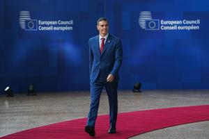 (251024) -- BRUSELAS, 24 octubre, 2025 (Xinhua) -- Imagen del 23 de octubre de 2025 del presidente del Gobierno español, Pedro Sánchez, asistiendo a una cumbre del Consejo Europeo, en Bruselas, Bélgica. Líderes de la Unión Europea no lograron ponerse de acuerdo el jueves sobre un plan destinado a utilizar los activos rusos congelados para financiar nuevos préstamos a Ucrania, luego de que resurgieran las divisiones en la cumbre del Consejo Europeo. (Xinhua/Peng Ziyang) (oa) (ra) (ce)