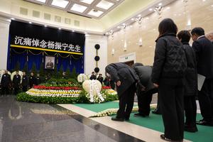 (251025) -- BEIJING, 25 octubre, 2025 (Xinhua) -- Imagen del 24 de octubre de 2025 de personas rindiendo homenaje a Chen Ning Yang en el Cementerio Revolucionario de Babaoshan, en Beijing, capital de China. Una ceremonia se llevó a cabo el viernes en Beijing para rendir homenaje al fallecido físico Chen Ning Yang, premio Nobel, académico de la Academia de Ciencias de China y profesor de la Universidad de Tsinghua. (Xinhua/Ju Huanzong) (jg) (rtg) (da)