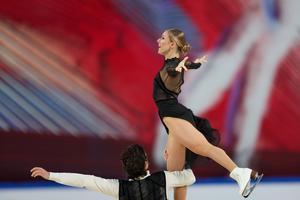 (251025) -- CHONGQING, 25 octubre, 2025 (Xinhua) -- Emilea Zingas (arriba)/Vadym Kolesnik, de Estados Unidos, realizan una presentación durante la danza libre sobre hielo en la Copa de China del Gran Premio de Patinaje Artístico de la ISU 2025, en la municipalidad de Chongqing, en el suroeste de China, el 25 de octubre de 2025. (Xinhua/Huang Wei) (rtg) (da)