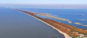(251025) -- BEIJING, 25 octubre, 2025 (Xinhua) -- Vista aérea tomada con un dron el 24 de octubre de 2025 del paisaje otoñal del lago Xingkai, en la ciudad de Mishan, en la provincia de Heilongjiang, en el noreste de China. (Xinhua/Huang Yongxing) (oa) (da)