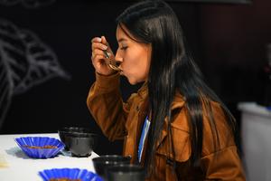 (251024) -- BOGOTA, 24 octubre, 2025 (Xinhua) -- Una mujer prueba café durante la feria Cafés de Colombia Expo 2025 llevada a cabo en el recinto ferial Corferias, en Bogotá, capital de Colombia, el 24 de octubre de 2025. Los productores de cafés especiales de Colombia ven con interés el crecimiento del mercado en China que para 2025 se ha consolidado como el sexto comprador del producto insigne del país andino, según cifras de la Federación Nacional de Cafeteros, y se proyecta para ser uno de los primeros compradores en los próximos años. (Xinhua/Andrés Moreno) (am) (jg) (da) (ce)