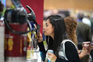 (251024) -- BOGOTA, 24 octubre, 2025 (Xinhua) -- Una mujer huele café durante la feria Cafés de Colombia Expo 2025 llevada a cabo en el recinto ferial Corferias, en Bogotá, capital de Colombia, el 24 de octubre de 2025. Los productores de cafés especiales de Colombia ven con interés el crecimiento del mercado en China que para 2025 se ha consolidado como el sexto comprador del producto insigne del país andino, según cifras de la Federación Nacional de Cafeteros, y se proyecta para ser uno de los primeros compradores en los próximos años. (Xinhua/Andrés Moreno) (am) (jg) (da) (ce)