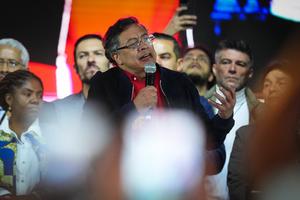 (251024) -- BOGOTA, 24 octubre, 2025 (Xinhua) -- El presidente colombiano, Gustavo Petro (frente), pronuncia un discurso durante una concentración en la Plaza de Bolívar, en Bogotá, capital de Colombia, el 24 de octubre de 2025. Petro anunció el viernes que prepara su defensa legal ante la confirmación del Gobierno de Estados Unidos sobre sanciones contra él y su familia por presuntos vínculos con el narcotráfico. (Xinhua/Andrés Moreno) (am) (ra) (ce)
