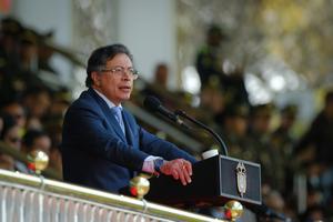 (251024) -- BOGOTA, 24 octubre, 2025 (Xinhua) -- Imagen proveída por la Presidencia de Colombia del presidente colombiano, Gustavo Petro, pronunciando un discurso durante la toma de posesión del brigadier general William Oswaldo Rincón Zambrano, como nuevo director de la Policía Nacional de Colombia, en Bogotá, capital de Colombia, el 24 de octubre de 2025. (Xinhua/Ovidio González/Presidencia de Colombia) (rtg) (ra) (ce)