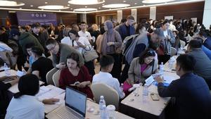 (251025) -- ASTANA, 25 octubre, 2025 (Xinhua) -- Imagen del 24 de octubre de 2025 de una escena en una feria de empleo de empresas chinas, en Astaná, Kazajistán. La feria de empleo se llevó a cabo aquí el viernes. (Xinhua/Kalizhan Ospanov) (oa) (da)