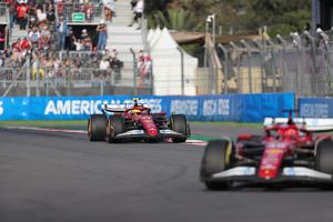 (251025) -- CIUDAD DE MEXICO, 25 octubre, 2025 (Xinhua) -- Imagen del 24 de octubre de 2025 del piloto británico de la escudería Ferrari, Lewis Hamilton (i), compitiendo durante la sesión de prácticas del Gran Premio de la Ciudad de México 2025 de Fórmula Uno, en el Autódromo Hermanos Rodríguez, en la Ciudad de México, capital de México. (Xinhua/Li Mengxin) (rtg) (da)