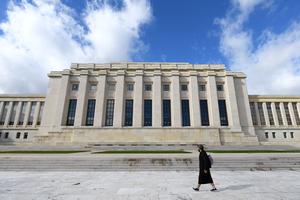 (251025) — GINEBRA, 25 octubre, 2025 (Xinhua) — Imagen del 24 de octubre de 2025 de un hombre caminando frente al Palacio de las Naciones, en Ginebra, Suiza. Una exposición fotográfica titulada “Vidas Compartidas, Futuro Compartido” para conmemorar el 80 aniversario de la Organización de las Naciones Unidas fue inaugurada aquí en el Palacio de las Naciones el viernes, coincidiendo con el Día de las Naciones Unidas. La exposición presentó 27 historias que muestran cómo las Naciones Unidas hicieron una diferencia en la vida cotidiana de las personas, desde la promoción de la paz y la seguridad hasta la prestación de ayuda humanitaria. (Xinhua/Lian Yi) (oa) (da)