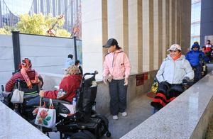(251026) -- BEIJING, 26 octubre, 2025 (Xinhua) -- Personas con discapacidad física salen del restaurante Trojan Fairy tras una proyección cinematográfica en el restaurante Trojan Fairy, en Beijing, capital de China, el 26 de octubre de 2025. El restaurante Trojan Fairy, dedicado a apoyar a las personas con discapacidad, organizó una proyección cinematográfica para 52 asistentes con discapacidad visual y física. El evento contó con audiodescripciones narradas para ayudar a los participantes con discapacidad visual a visualizar las escenas. (Xinhua/Yin Gang) (oa) (ah)