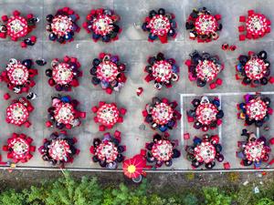 (251027) — BEIJING, 27 octubre de 2025 (Xinhua) — Vista aérea tomada con un dron el 26 de octubre de 2025 de un banquete celebrado para personas mayores, en la aldea de Magou del poblado de Baimi, en la ciudad de Taizhou, en la provincia de Jiangsu, en el este de China. Una serie de actividades festivas se celebraron en todo el país para conmemorar el Festival Chongyang de China, que este año se celebra el 29 de octubre. Conocido también como el Día de los Ancianos en China, este festival pone de relieve el cuidado que la sociedad presta a las personas de edad avanzada. (Xinhua/Gu Jihong) (oa) (ah) (ce)