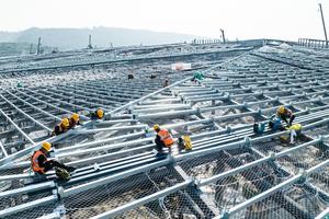 (251027) -- XI'AN, 27 octubre, 2025 (Xinhua) -- Imagen tomada con un dron el 27 de octubre de 2025 de trabajadores laborando en el sitio de construcción de la Estación Este de Xi'an, en la provincia de Shaanxi, en el noroeste de China. La estructura principal del edificio de la Estación Este de Xi'an se completó con éxito el lunes. (Xinhua/Liu Xiang) (rtg) (ah) (ce)