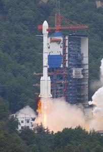 (251026) -- XICHANG, 26 octubre, 2025 (Xinhua) -- Un cohete portador Gran Marcha-3B transportando al satélite Gaofen-14 02 despega del Centro de Lanzamiento de Satélites de Xichang, en la provincia de Sichuan, en el suroeste de China, el 26 de octubre de 2025. El satélite fue lanzado a las 11:55 (hora de Beijing) y entró con éxito en la órbita planificada. (Xinhua/Wang Yinjie) (rtg) (ah)