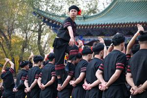 (251027) -- URUMQI, 27 octubre, 2025 (Xinhua) -- Artistas de una compañía de danza y ópera de Yunnan realizan una presentación durante un evento flash mob en el parque Renmin, en Urumqi, en la región autónoma uygur de Xinjiang, en el noroeste de China, el 27 de octubre de 2025. (Xinhua/Ding Lei) (oa) (ah) (ce)