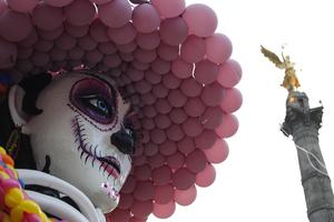 (251027) -- CIUDAD DE MEXICO, 27 octubre, 2025 (Xinhua) -- Imagen del 26 de octubre de 2025 de una escultura de una catrina gigante vista en la Mega Procesión de las Catrinas 2025, en la Ciudad de México, capital de México. (Xinhua/Francisco Cañedo) (fc) (oa) (ah) (ce)
