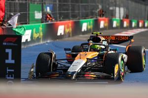 (251027) -- CIUDAD DE MEXICO, 27 octubre, 2025 (Xinhua) -- Imagen del 26 de octubre de 2025 del piloto británico de la escudería McLaren, Lando Norris, festejando al término del Gran Premio de la Ciudad de México 2025 de Fórmula Uno, en el Autódromo Hermanos Rodríguez, en la Ciudad de México, capital de México. (Xinhua/Song Haiyuan) (rtg) (ah) (ce)