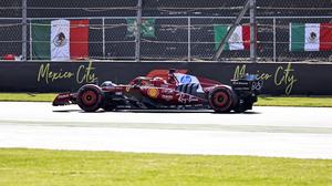 (251026) -- CIUDAD DE MEXICO, 26 octubre, 2025 (Xinhua) -- Imagen del 25 de octubre de 2025 del piloto monegasco de la escudería Ferrari, Charles Leclerc, compitiendo durante la sesión de clasificación del Gran Premio de la Ciudad de México 2025 de Fórmula Uno, en el Autódromo Hermanos Rodríguez, en la Ciudad de México, capital de México. (Xinhua/Li Mengxin (rtg) (da)