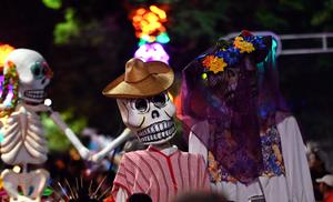 (251027) -- CIUDAD DE MEXICO, 27 octubre, 2025 (Xinhua) -- Imagen del 26 de octubre de 2025 de personas participando durante la Mega Procesión de las Catrinas 2025, en la Ciudad de México, capital de México. La Procesión de las Catrinas se celebró el domingo previo al Día de Muertos. (Xinhua/Zhang Lei) (oa) (ah) (ce)