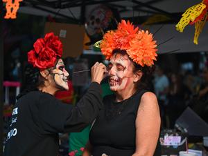 (251027) -- CIUDAD DE MEXICO, 27 octubre, 2025 (Xinhua) -- Imagen del 26 de octubre de 2025 de personas preparándose para participar en la Mega Procesión de las Catrinas 2025, en la Ciudad de México, capital de México. La Procesión de las Catrinas se celebró el domingo previo al Día de Muertos. (Xinhua/Zhang Lei) (oa) (ah) (ce)
