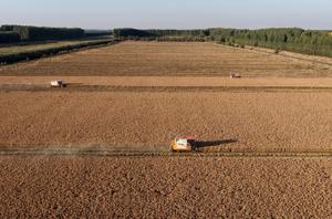 (251028) -- TANGSHAN, 28 octubre, 2025 (Xinhua) -- Vista aérea tomada con un dron el 27 de octubre de 2025 de agricultores cosechando arroz en un campo, en el distrito de Fengnan de la ciudad de Tangshan, en la provincia de Hebei, en el norte de China. La temporada de cosecha del arroz ha llegado a la ciudad de Tangshan, donde los agricultores aprovechan el buen tiempo para acelerar la recolección. (Xinhua/Yang Shiyao) (oa) (ah) (ce)