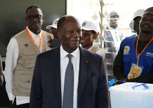 (251027) -- ABIYAN, 27 octubre, 2025 (Xinhua) -- Imagen de archivo del 25 de octubre de 2025 del presidente de Cote d'Ivoire, Alassane Ouattara, en un colegio electoral, en Abiyán, Cote d'Ivoire. Ouattara candidato de la Agrupación de Houphouëtistas por la Democracia y la Paz, ganó la elección presidencial con 89,77 por ciento de los votos, mostraron los resultados provisionales publicados el lunes por la Comisión Electoral Independiente del país. (Xinhua/Zhang Jian) (oa) (ah) (ce)