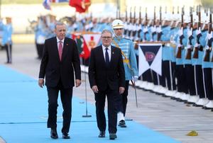 (251027) -- ANKARA, 27 octubre, 2025 (Xinhua) -- El presidente turco, Recep Tayyip Erdogan (i), y el primer ministro británico, Keir Starmer, pasan revista a una guardia de honor durante una ceremonia de bienvenida, en Ankara, Turquía, el 27 de octubre de 2025. (Xinhua/Mustafa Kaya) (rtg) (ah) (ce)