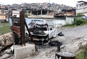 (251029) -- RIO DE JANEIRO, 29 octubre, 2025 (Xinhua) -- Imagen del 29 de octubre de 2025 de un vehículo quemado tras la mega operación policial contra el grupo criminal "Comando Vermelho", en Río de Janeiro, Brasil. Aumentaron a 119 las personas que perdieron la vida durante la mega operación policial contra el grupo criminal "Comando Vermelho" llevada a cabo el martes en los complejos habitacionales de Alemão y Penha, en la zona norte de la ciudad brasileña de Río de Janeiro, confirmó el miércoles el Gobierno estatal. (Xinhua/Claudia Martini) (ah) (ra) (ce)