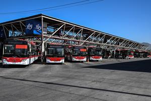 (251029) -- SANTIAGO, 29 octubre, 2025 (Xinhua) -- Imagen del 20 de octubre de 2025 de autobuses eléctricos chinos, en el electroterminal El Conquistador, en la comuna de Maipú, en Santiago, capital de Chile. La electromovilidad en el transporte público chileno es una de las postales del país sudamericano en el mundo y lo ha logrado gracias al trabajo hecho entre los sectores públicos y privados, quienes han utilizado la tecnología china para desarrollarla, un ejemplo de colaboración en el Asia-Pacífico para avanzar en el cuidado de las personas y el medio ambiente. (Xinhua/Jorge Villegas) (jv) (ah) (ra) (ce)
