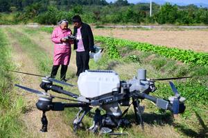 (251029) — TONGCHENG, 29 octubre, 2025 (Xinhua) — Imagen del 23 de octubre de 2025 de Dai Shuying (i) operando un dron de protección de plantas bajo la guía de su nieto, Wang Tiantian, en la aldea de Laomei del poblado de Xindu, en la ciudad de Tongcheng, en la provincia de Anhui, en el este de China. Dai Shuying, de 82 años de edad, vive con su hijo mayor y su nieto. Aunque actualmente no realiza muchas labores agrícolas, ocasionalmente utiliza un dron para ayudar a los agricultores a fumigar con pesticidas y fertilizantes, bajo la supervisión de su nieto Wang Tiantian. Acompañada de Wang, también promociona y vende productos agrícolas como arroz y aceite a través de transmisiones en vivo, y disfruta grabando videos con él. (Xinhua/Zhou Mu) (ah) (ra) (ce)