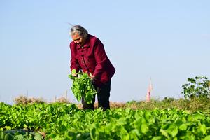 (251029) -- TONGCHENG, 29 octubre, 2025 (Xinhua) -- Imagen del 22 de octubre de 2025 de Dai Shuying recolectando vegetales en un jardín de vegetales, en la aldea de Laomei del poblado de Xindu, en la ciudad de Tongcheng, en la provincia de Anhui, en el este de China. Dai Shuying, de 82 años de edad, vive con su hijo mayor y su nieto. Aunque actualmente no realiza muchas labores agrícolas, ocasionalmente utiliza un dron para ayudar a los agricultores a fumigar con pesticidas y fertilizantes, bajo la supervisión de su nieto Wang Tiantian. Acompañada de Wang, también promociona y vende productos agrícolas como arroz y aceite a través de transmisiones en vivo, y disfruta grabando videos con él. (Xinhua/Zhou Mu) (ah) (ra) (ce)