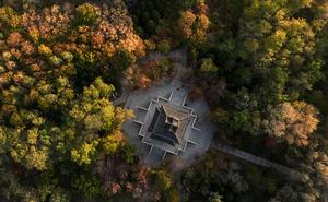 (251029) -- YINCHUAN, 29 octubre, 2025 (Xinhua) -- Vista aérea tomada con un dron el 28 de octubre de 2025 del paisaje otoñal del parque Haibao, en Yinchuan, en la región autónoma de la etnia hui de Ningxia, en el noroeste de China. Yinchuan, conocida como ciudad internacional de humedales, cuenta con casi 200 lagos naturales y humedales pantanosos, que cubren una superficie de 53.100 hectáreas. (Xinhua/Feng Kaihua) (ah) (ra) (ce)