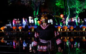 (251029) -- CIUDAD DE MEXICO, 29 octubre, 2025 (Xinhua) -- Imagen del 28 de octubre de 2025 de un bailarín del Ballet Folklórico de México de Amalia Hernández participando en el ensayo del espectáculo "La muerte en México está más viva que nunca" que se llevará a cabo en el marco de la festividad del Día de Muertos, en la isleta del Lago Menor del Bosque de Chapultepec, en la Ciudad de México, capital de México. (Xinhua/Francisco Cañedo) (fc) (jg) (da) (ce)