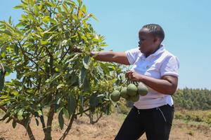 (251028) -- NJOMBE, 28 octubre, 2025 (Xinhua) -- Imagen del 25 de octubre de 2025 de Juliana Yotham Mwalyepelo, directora ejecutiva de Chrises Real Solutions Company Limited, revisando aguacates en su granja, en Njombe, en el sur de Tanzania. Con la llegada de la Exposición Internacional de Importaciones de China (CIIE, por sus siglas en inglés), una de las ferias comerciales más grandes del mundo, Mwalyepelo y su equipo se sienten "honrados y emocionados" de presentar sus productos locales en Shanghai. (Xinhua/Nurdin Pallangyo) (oa) (ah) (ce)
