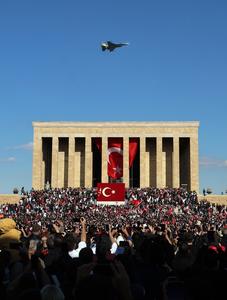(251029) -- ANKARA, 29 octubre, 2025 (Xinhua) -- Un avión de combate F-16 del equipo turco de demostración acrobática en solitario, Soloturk, sobrevuela Anitkabir, el mausoleo del fundador de la República Turca, Mustafa Kemal Ataturk, para celebrar el Día de la República, en Ankara, Turquía, el 29 de octubre de 2025. Turquía celebró su Día de la República para conmemorar el 102 aniversario de la fundación de la República de Turquía. (Xinhua/Mustafa Kaya) (ah) (ra) (ce)