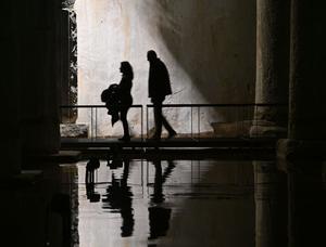 (251028) -- ESTAMBUL, 28 octubre, 2025 (Xinhua) -- Personas visitan la Cisterna de la Basílica, en Estambul, Turquía, el 28 de octubre de 2025. (Xinhua/Liu Lei) (oa) (ah) (ce)
