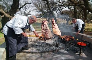 (251030) -- LA PAMPA, 30 octubre, 2025 (Xinhua) -- Imagen sin fechar cedida por la Secretaría de Turismo de la Provincia de La Pampa de parrilleros cocinando piezas de carne al asador, en la Estancia Nehuen Mapu, en la localidad de Quehué, en la provincia de La Pampa, Argentina. Con la mirada puesta en fortalecer su presencia en el mercado chino, sectores de la provincia argentina de La Pampa participarán este año en una nueva edición de la Exposición Internacional de Importaciones de China (CIIE, según siglas en inglés) con la carne bovina como producto insignia de exportación y emblema de su identidad productiva. (Xinhua/Secretaría de Turismo de la Provincia de La Pampa) (mz) (da) (ra) (ce)