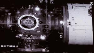 (251031) -- BEIJING, 31 octubre, 2025 (Xinhua) -- Imagen capturada en el Centro de Control Aeroespacial de Beijing el 1 de noviembre de 2025 de la nave espacial tripulada Shenzhou-21 adoptando un modo rápido automatizado de encuentro y acoplamiento con el puerto frontal del módulo central Tianhe de la estación espacial. Después de entrar en órbita, la nave espacial tripulada Shenzhou-21 adoptó un modo rápido automatizado de encuentro y acoplamiento con el puerto frontal del módulo central Tianhe a las 03:22 (hora de Beijing). (Xinhua/Jin Liwang) (jg) (da) (ce)