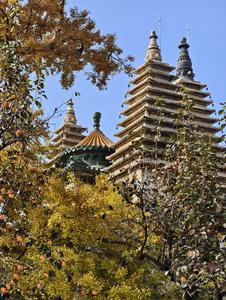 (251031) -- BEIJING, 31 octubre, 2025 (Xinhua) -- Imagen tomada con un teléfono móvil el 31 de octubre de 2025 de una vista del Templo Wuta (de las cinco pagodas), en Beijing, capital de China. (Xinhua/Xu Jinquan) (jg) (da) (ce)