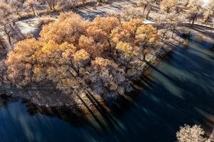 (251031) — BANDERA DE EJINA, 31 octubre, 2025 (Xinhua) — Vista aérea tomada con un dron el 30 de octubre de 2025 del paisaje de un bosque de populus euphratica, en la bandera de Ejina, en la región autónoma de Mongolia Interior, en el norte de China. (Xinhua/Lian Zhen) (oa) (ra) (ce)