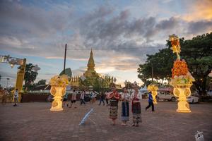 (251030) -- VIENTIAN, 30 octubre, 2025 (Xinhua) -- Tres mujeres posan para fotografías en la Plaza That Luang, en Vientián, capital de Laos, el 30 de octubre de 2025. El festival anual That Luang se celebrará del 1 al 5 de noviembre y ofrecerá una vibrante mezcla de actividades culturales, religiosas y de entretenimiento que celebran las ricas tradiciones y el patrimonio del pueblo laosiano. (Xinhua/Kaikeo Saiyasane) (rtg) (ra) (ce)