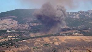 (251030) -- NABATIEH, 30 octubre, 2025 (Xinhua) -- Imagen del 30 de octubre de 2025 de humo elevándose después de ataques aéreos israelíes dirigidos contra las afueras de Nabatieh, en el sur de Líbano. (Xinhua/Taher Abu Hamdan) (rtg) (ra) (ce)