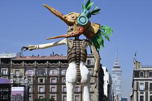 (251031) -- CIUDAD DE MEXICO, 31 octubre, 2025 (Xinhua) -- Imagen del 31 de octubre de 2025 de la Ofrenda Monumental del Día de Muertos con el tema de los 700 años de la fundación de México-Tenochtitlán, en el Zócalo de la Ciudad de México, capital de México. (Xinhua/Li Muzi) (oa) (ra) (ce)